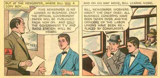 - Bill, det er ikkje berre i avisene. Dei har teke over alt av firma. Og fagforeiningane er også tekne over av kommunistar.