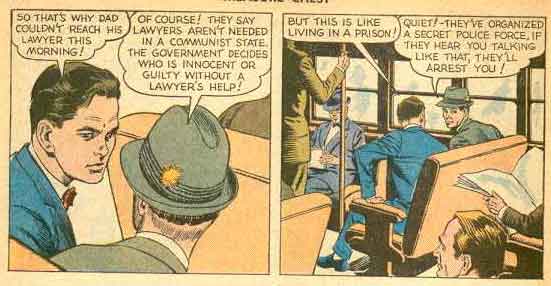 - Akkurat! Dei seier at det ikkje trengst advokatar i ein kommunistisk stat. Regjeringa avgjer kven som er skuldig eller uskuldig utan hjelp frå advokatar.