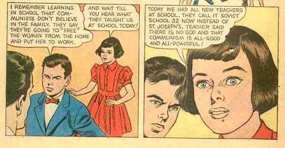 - Eg hugsar vi lærte på skolen at kommunistar ikkje trur på familien. Dei seier at dei skal "frigjere" kvinna frå heimen og sette ho i arbeid.