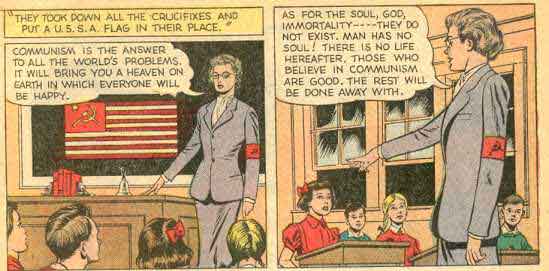 - Kommunismen er svaret på alle problema i verda. Det vil verta eit himmerike på jorda, og alle vil verte lykkelege. Slikt som sjela, gud og det udøydelege finst ikkje. Mennesket har ikkje noka sjel. Det er ikkje noko liv etter dette. Dei som trur på kommunismen, er gode. Dei andre vil vi ordne opp med.