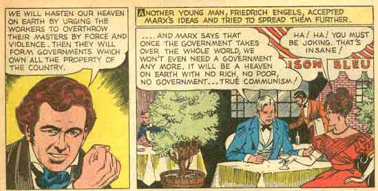 - Vi vil framskunde himmerike på jorda ved å oppfordra arbeidarane til å velte dei som styrer, med makt og vald. Så kan dei danne regjeringar som vil eige all eigedom i landet.