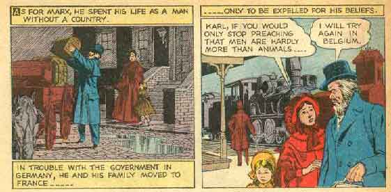 Marx sjølv levde livet sitt utan heimland. Han kom i bråk med styresmaktene i Tyskland, så han og familien flytta til Frankrike ... men derifrå vart han vist bort på grunn av det han trudde på.