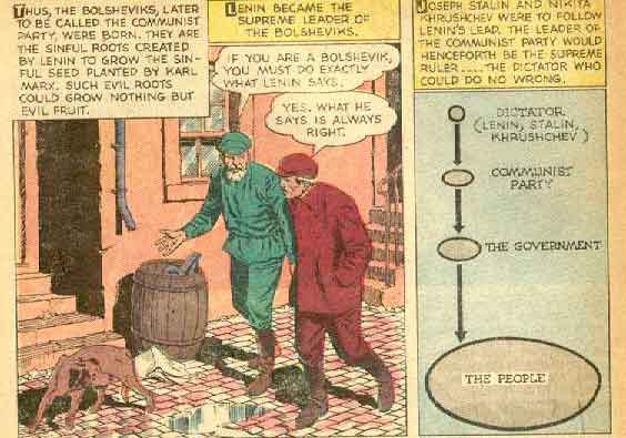 Slik vart bolsjevikane, det som seinare skulle kallast kommunistpartiet, fødd. Dei er dei syndige røttene Lenin skapte for at den syndige sæden Marx hadde planta, skulle vekse. Slike vonde røtter kan ikkje gi anna enn vond frukt.