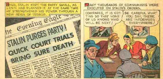 På denne måten sørga Stalin for å halde partiet lite, slik Lenin hadde planlagt. Samstundes styrka han makta si gjennom eit terrorstyre. Mange tusen kommunistar vart avretta på ordre frå Stalin.