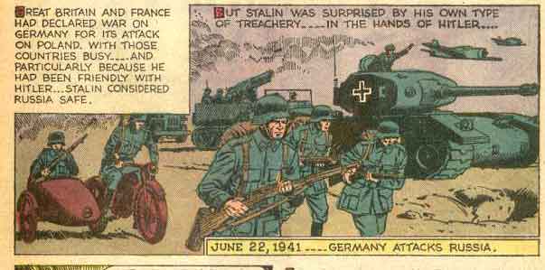 Storbritannia og Frankrike hadde lyst krig mot Tyskland etter åtaket mot Polen. Med dei landa opptatt - og særleg av di han hadde vore venleg mot Hitler - rekna Stalin med at Russland var trygt. Men Stalin vart overraska av eit forræderi av hans eige slag - denne gongen frå Hitler. 22. juni 1941 gikk Tyskland til åtak på Russland.