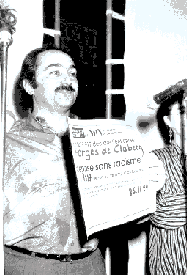 Lorenzo Butera, tillitsvalgt FGTB fra jernverket mottar diplomet for fabrikk uten rasisme på Objektiv-festen i 1994 i Antwerpen.