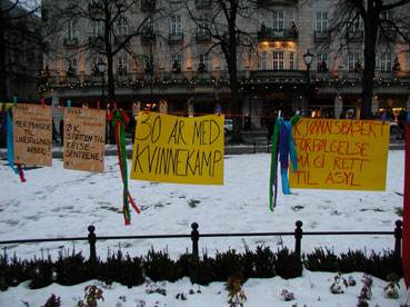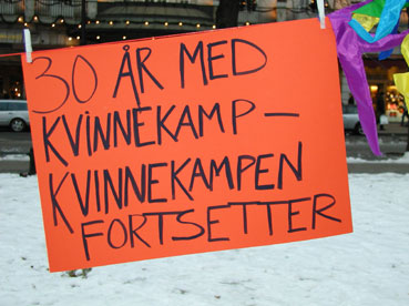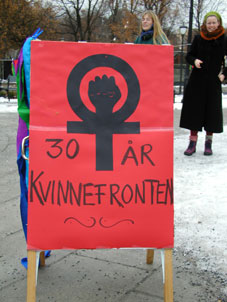 Kvinnefronten markerte sitt 30-års jubileum foran Stortinget 23. november. På lange snorer hang flotte transparenter og plakater som vakte oppmerksomhet lang vei. Appeller, løpesedler, kaffe og boller fikk mange til å stoppe opp og snakke. Et fulltegna ark med navn på kvinner som ønska flere opplysninger om Kvinnefonten, var dagens beste resultat. AKP gratulerer Kvinnefronten med jubileet!